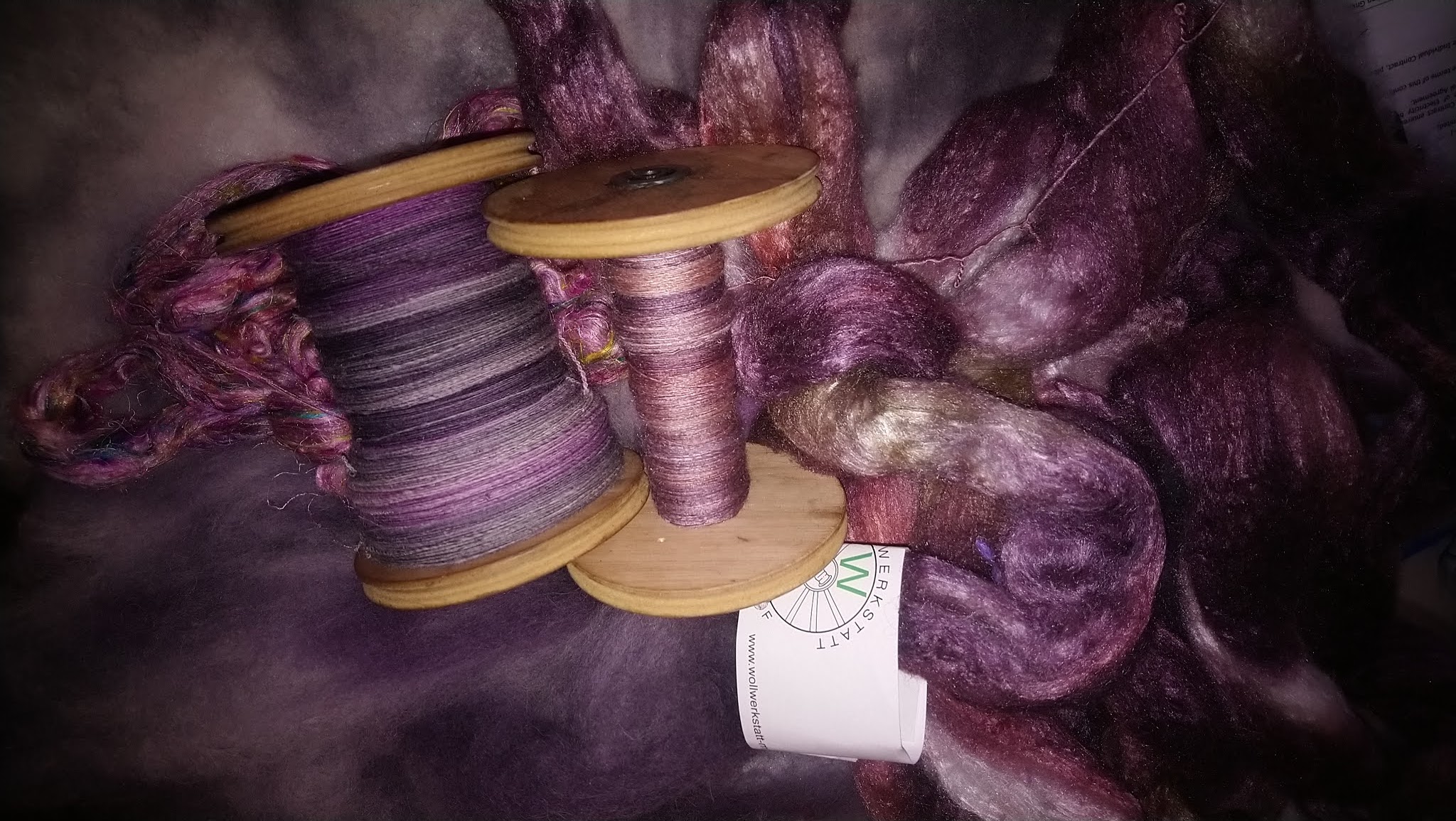 Hatte letzten Winter schon mal was gesponnen aber mit schwarzem Merino + Tussahseide verzwirnt wo die Farben deutlich besser raus kamen. Glaub ich müsste noch etwas daheim haben... werde das sicher wieder mit schwarzer Wolle verzwirnen!